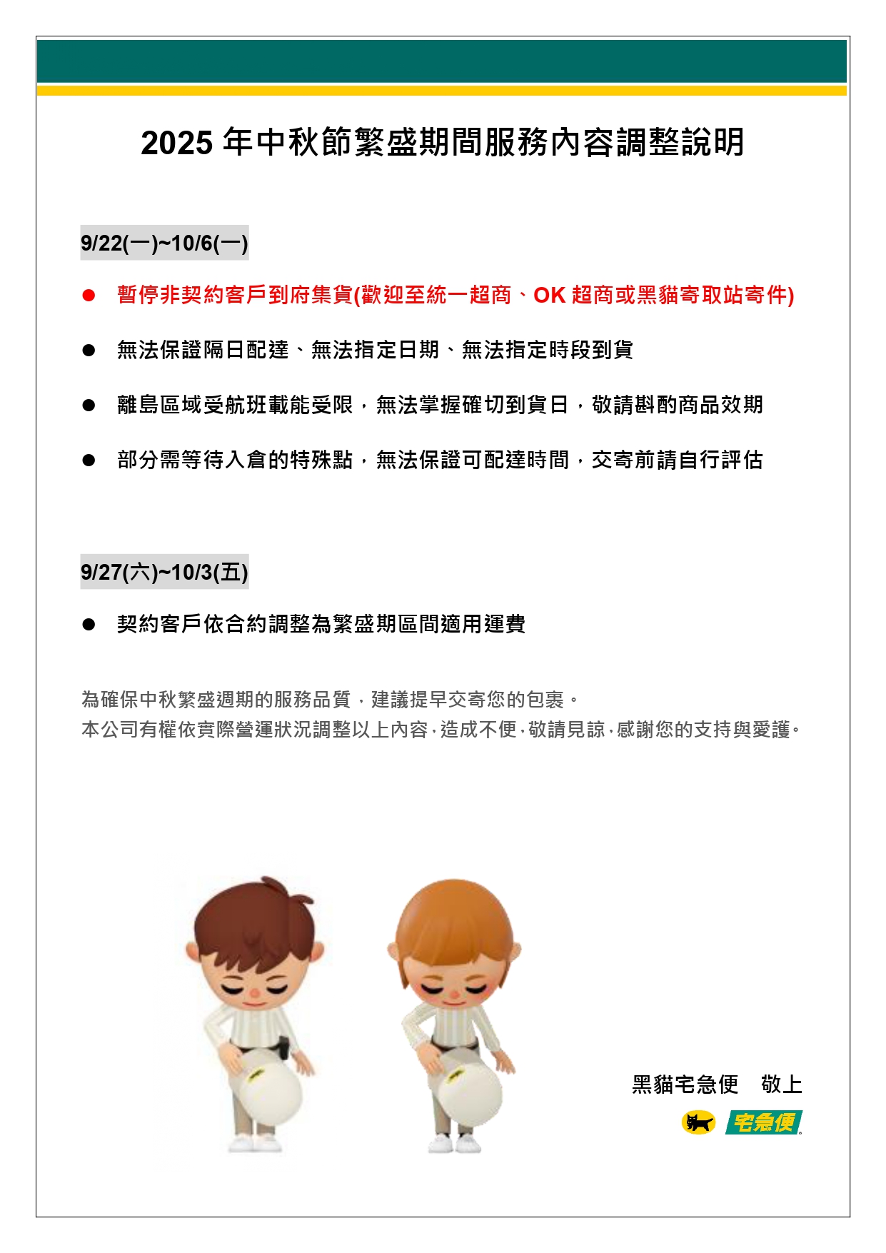 松稜食品企業有限公司【宅急便中秋配送公告】